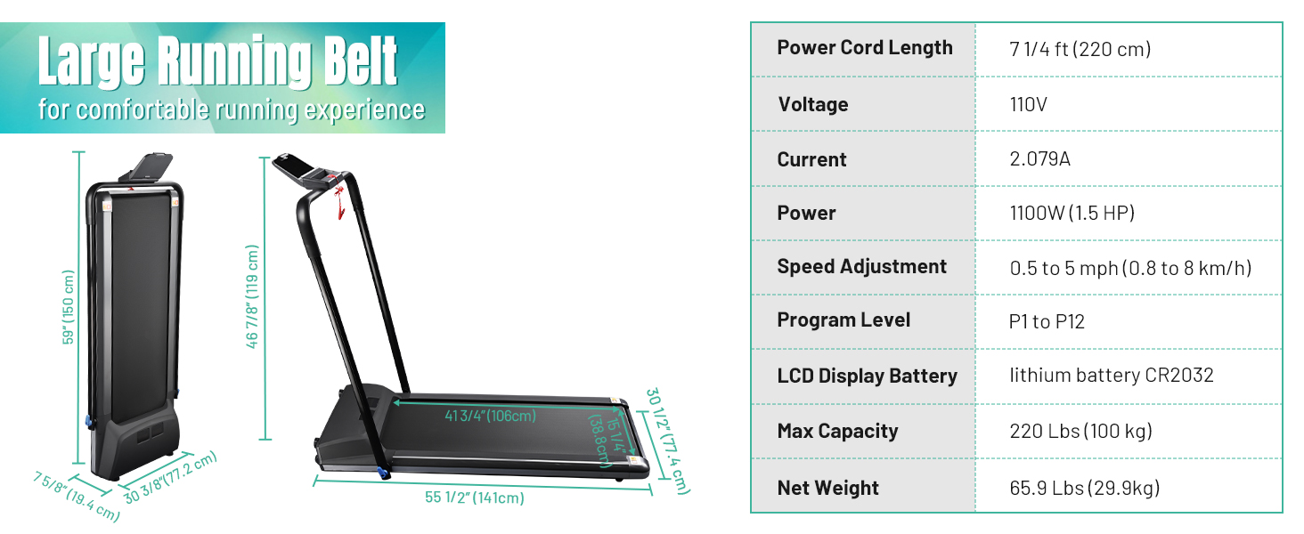 • [Wide Application & 1 Year Warranty]: this slim running machine, making the best use of limited space, helps you burn fat and keep heath anytime in your apartment, dormitory, office, studios and more; 1 year warranty for quality assurance