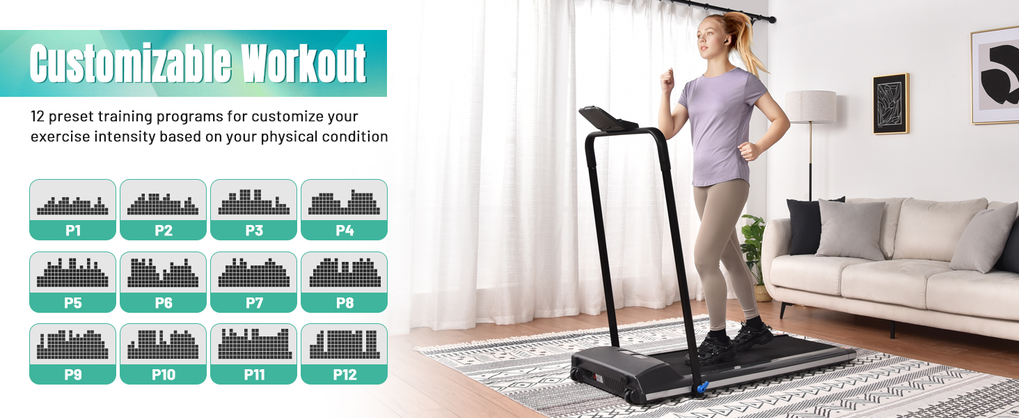 • [Customizable Workout & Remote Control]: 0.5 to 5 mph speed adjustment & 12 preset training programs for customize your exercise intensity based on your physical condition, with LCD display that shows speed, time, distance, step count & calories burned for monitoring your workouts; With remote control to realize 1 hand operation, getting rid of too-much-button operation