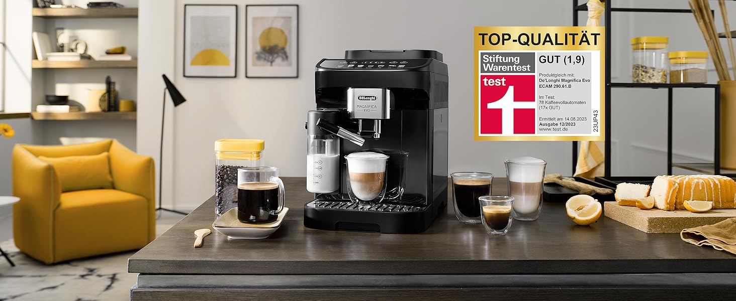 De'Longhi Magnifica Evo ECAM 292.81.B Fully Automatic Coffee Machine with LatteCrema Milk System, 7 Direct Selection Buttons for Cappuccino, Espresso and Other Coffee Specialities, 2-Cup Function