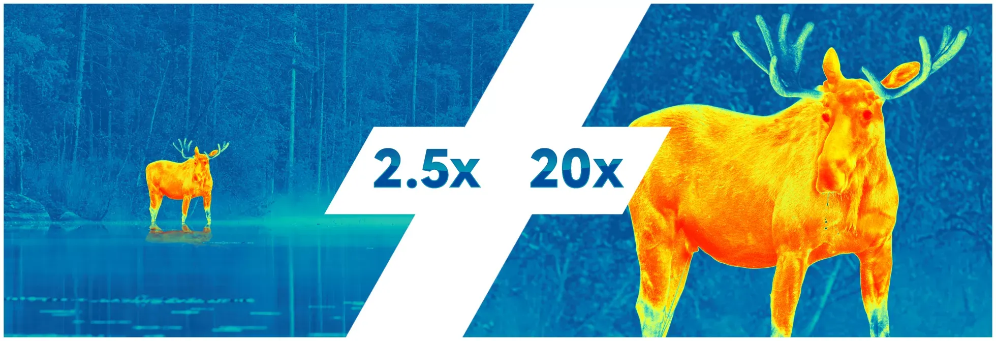 Zmienne powiekszenie od 2,5 do 20x pozwala na lepszq ostrosé i ogólnie lepszerozpoznawanie obiektów w oddali. Czujnik HD zapewnia wysoki poziom szczegótowosciobrazu w catym zakresie powiekszenia. Powiekszenie zmienia sie w krokach 2x lub wsposób ciagty, dostosowujac pole widzenia/wspótczynnik powiekszenia do biezacejsytuacji.