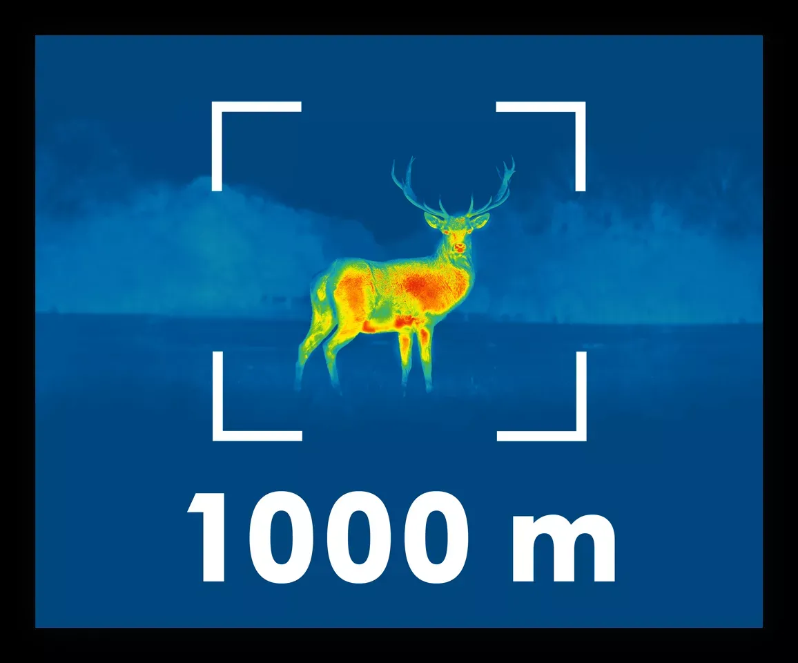 Understanding the distance to your target is crucial for making the right decision. The integrated laser rangefinder, with a range of up to 1 km, allows you to measure distances in both single-shot and continuous-scan modes with an accuracy of +1 meter, allowing for quick and accurate situational assessment.