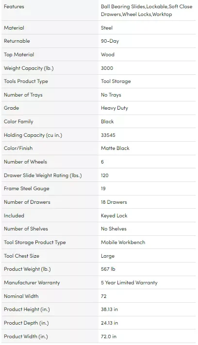 When you buy Heavy Duty 72" Wide 18 Drawer Deep Tool Box Mobile Workbench, Matte Black with Adjustable Height Hardwood Top online from our store, we make it as easy as possible for you to find out when your product will be available If you're interested If you have any questions about your purchase or any other product for sale, our customer service representatives are available to help. Whether you're just looking to purchase one item or your entire home, our store has countless items to choose from.